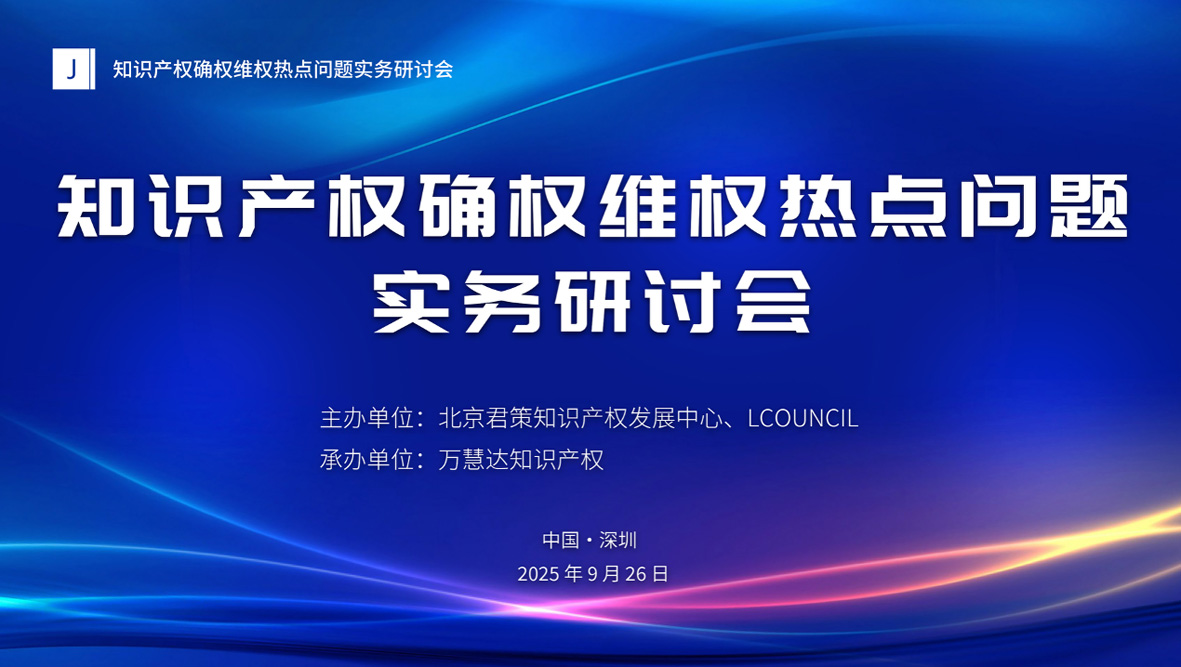 On September 26, 2025, the “IP Prosecution and Enforcement Hot Button Issue Symposium”, which is jointly hosted by the Beijing JUSTRA Intellectual Property Center (JUSTRA) and in-house membership service vendor LCOUNCIL, organized by Wanhuida Intellectual Property, is held in Shenzhen.