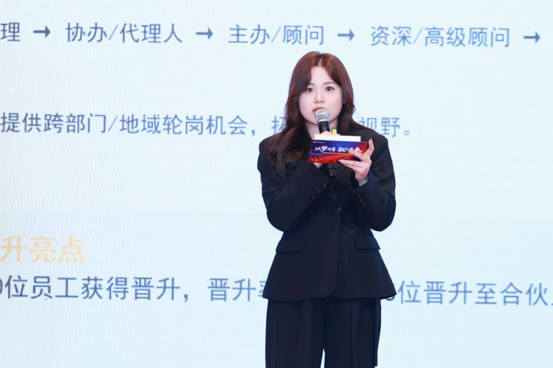 总结会由管委会成员、合伙人雷用剑和资深律师刘柏鹤主持,携手员工代表从业绩、市场、案件、荣誉、内部管理、人员福利等板块详细回顾2025年度丰硕成果。