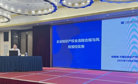 万慧达知识产权合伙人明星楠在“企业知识产权战略与创新实务培训...2025.10.22万慧达知识产权合伙人明星楠在“企业知识产权战略与创新实务培训班”做主题分享2025年10月22至23日,中国知识产权研究会与江苏省知识产权研究会联合主办的“企业知识产权战略与创新实务培训班”在江苏昆山成功举办,培训班围绕企业专利战略布局与高价值转化实务、商标国际注册实务、知识产权全流...2025.10.22 -