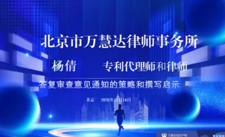 万慧达知识产权成员作为讲师参与“2025年‘小硕学知产’主题系列...2025.11.14万慧达知识产权成员作为讲师参与“2025年‘小硕学知产’主题系列公益培训”2025年11月14日,北京市专利代理师协会人才培养与发展专业委员会在线上成功举办“2025年‘小硕学知产’主题系列公益培训——第十二期:答复审查意见通知的策略”。2025.11.14 -