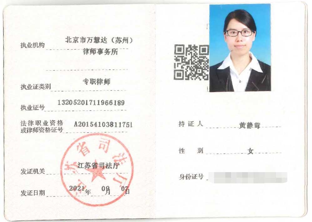 黄静苛苏州律师电话:(86-512)6807-6828业务领域:商标工作语言:中文、英文
